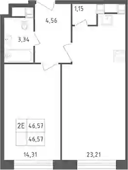15 349 795 ₽2-к.квартира, 46.6 м², 27 эт.
