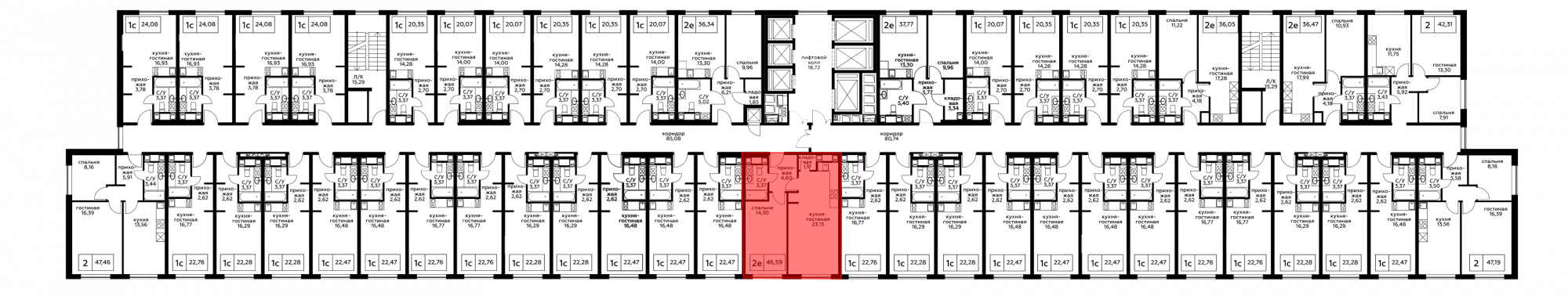2-к.квартира, 46.57 м², 12 эт. в ЖК Перец Корпус 1