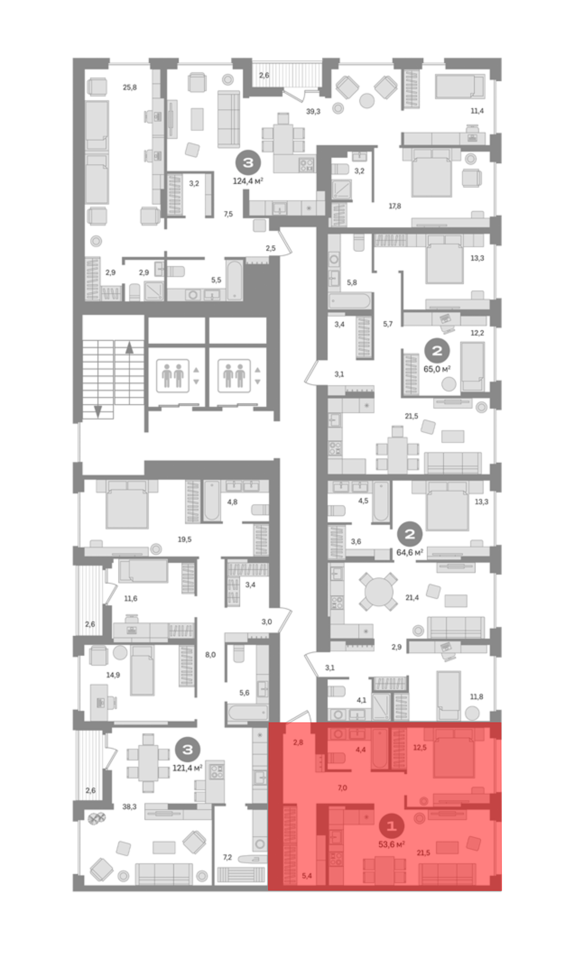 12 560 000 ₽2-к.квартира, 64.4 м², 6 эт.