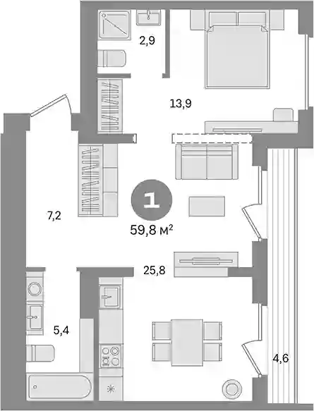 1-к.квартира, 55.2 м², 8 эт. в ЖК Первый квартал. Вторая очередь Корпус 13