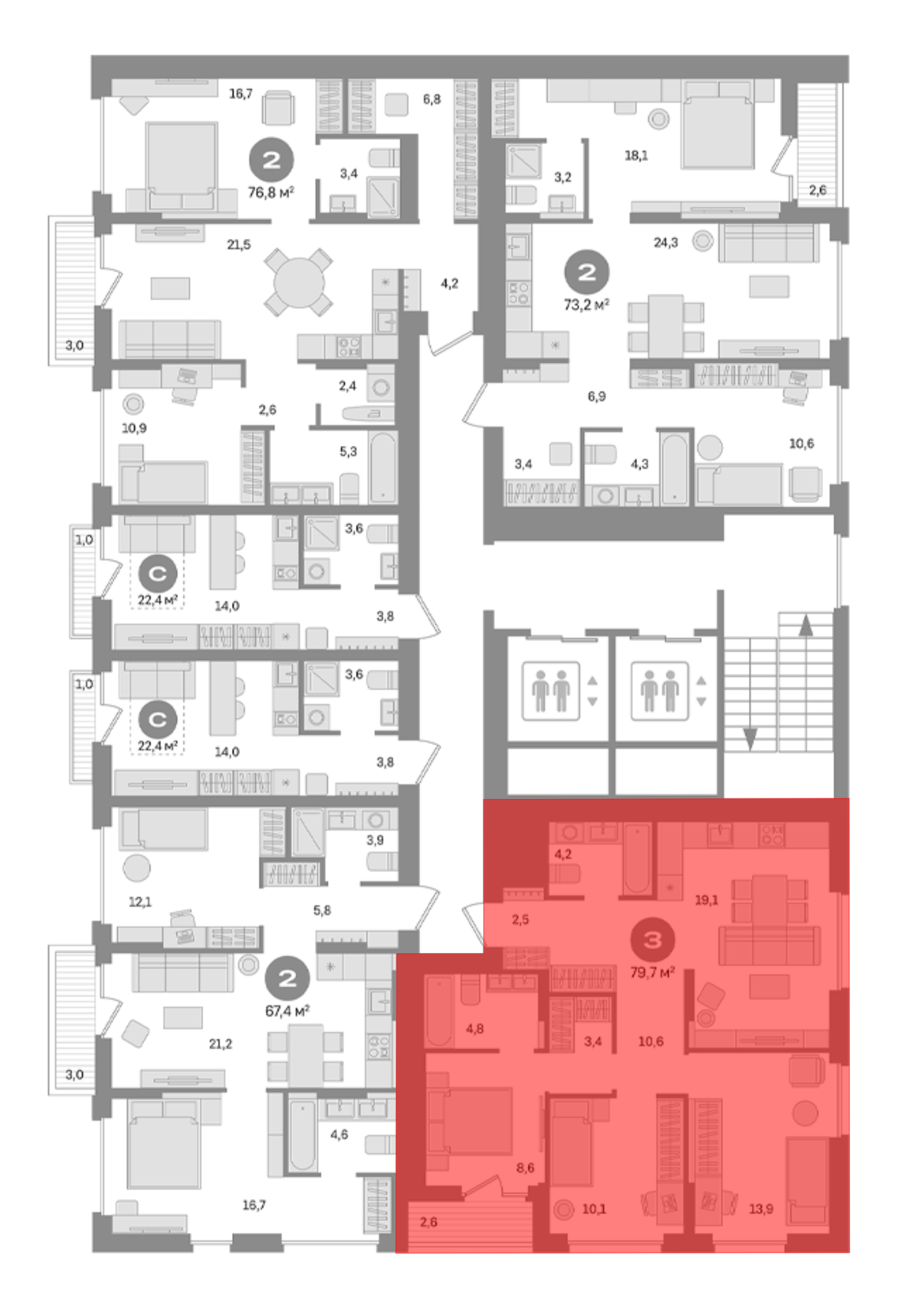 13 400 000 ₽2-к.квартира, 73.8 м², 12 эт.