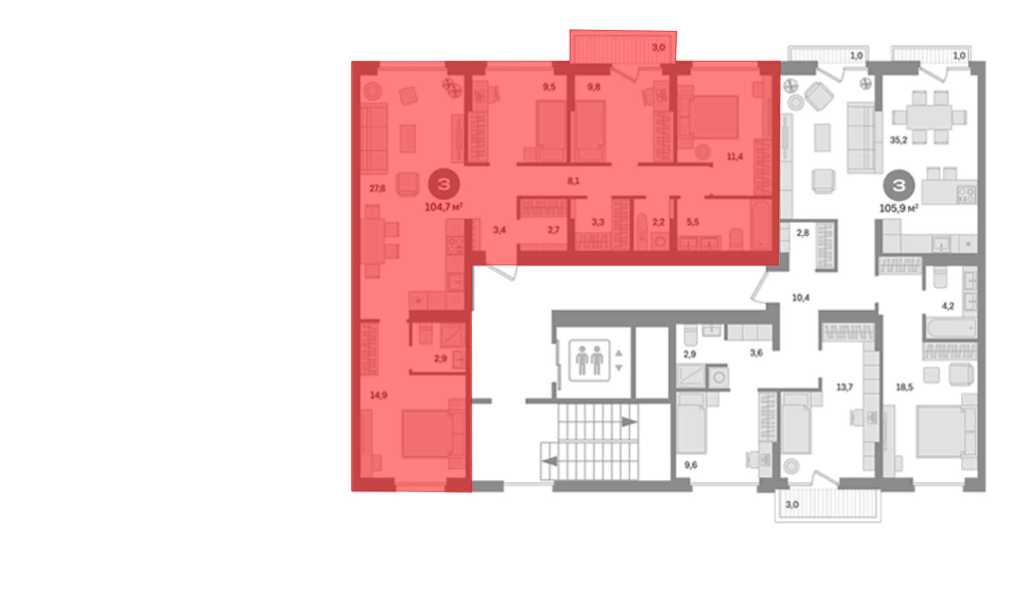 16 710 000 ₽3-к.квартира, 105.9 м², 8 эт.