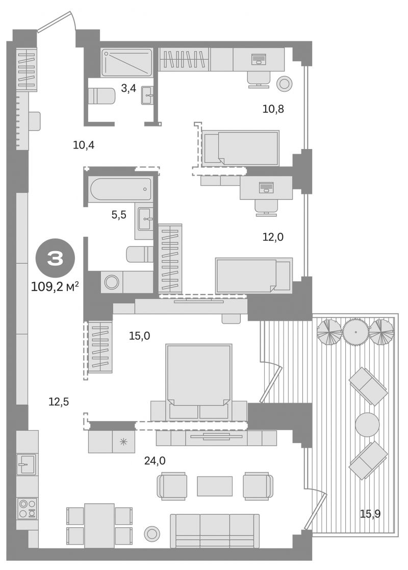 15 540 000 ₽3-к.квартира, 100.9 м², 3 эт.