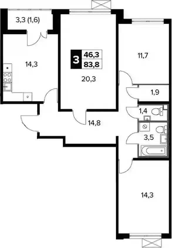 22 309 488 ₽3-к.квартира, 74.5 м², 14 эт.
