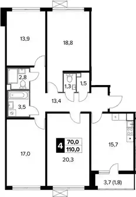 23 817 519 ₽4-к.квартира, 100.1 м², 1 эт.