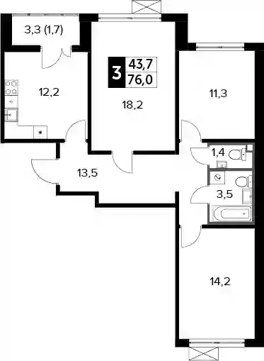 3-к.квартира, 74.3 м², 12 эт. в ЖК Первый Ленинградский Корпус 6
