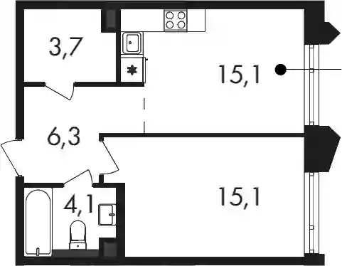 26 212 168 ₽2-к.квартира, 43.4 м², 4 эт.