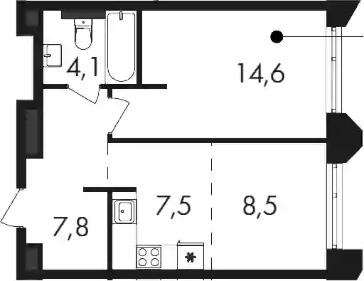 24 845 102 ₽2-к.квартира, 44.1 м², 2 эт.