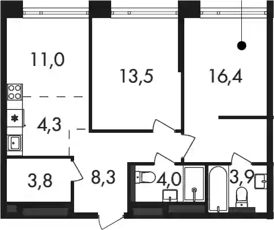 Проект предусматривает несколько вариантов планировок — от эргономичных студий до 4х-комнатных апартаментов с высотой потолков до 3 метров и высотой окон 1,8 метра, кухнями-гостиными, несколькими ванными комнатами. Из окон открываются виды на Аннинский лесопарк и Битцевский лес.