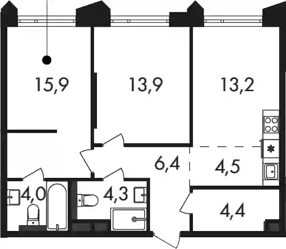 34 764 912 ₽3-к.квартира, 60.9 м², 3 эт.