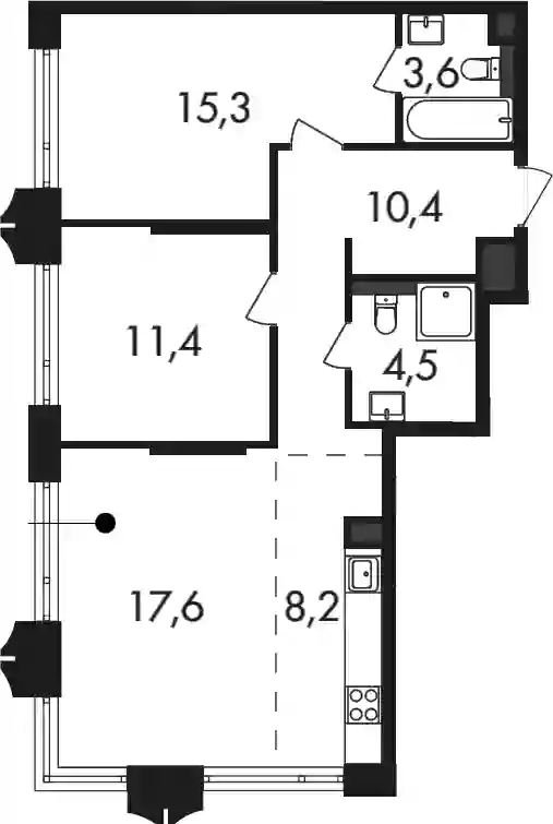 36 100 956 ₽3-к.квартира, 66.7 м², 2 эт.
