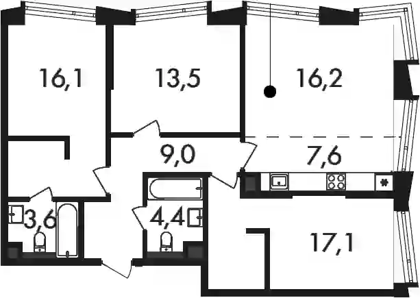 60 369 546 ₽4-к.квартира, 109.4 м², 19 эт.