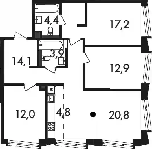 60 791 585 ₽4-к.квартира, 95.9 м², 20 эт.