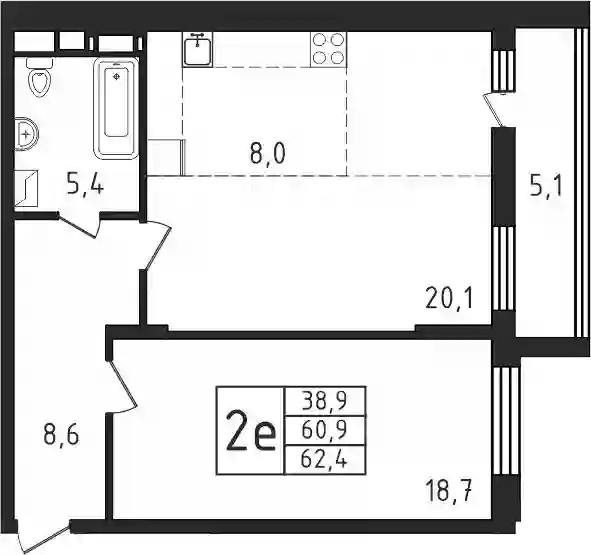 2-к.квартира, 60.87 м², 5 эт. в ЖК Пироговская ривьера. СЗ КОМФОРТИНВЕСТ Корпус 13