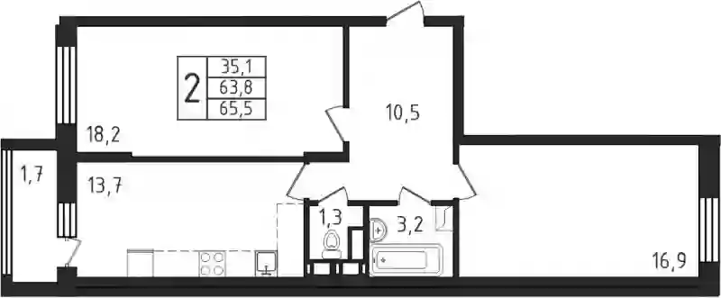 2-к.квартира, 63.8 м², 9 эт. в ЖК Пироговская ривьера. СЗ КОМФОРТИНВЕСТ Корпус 13