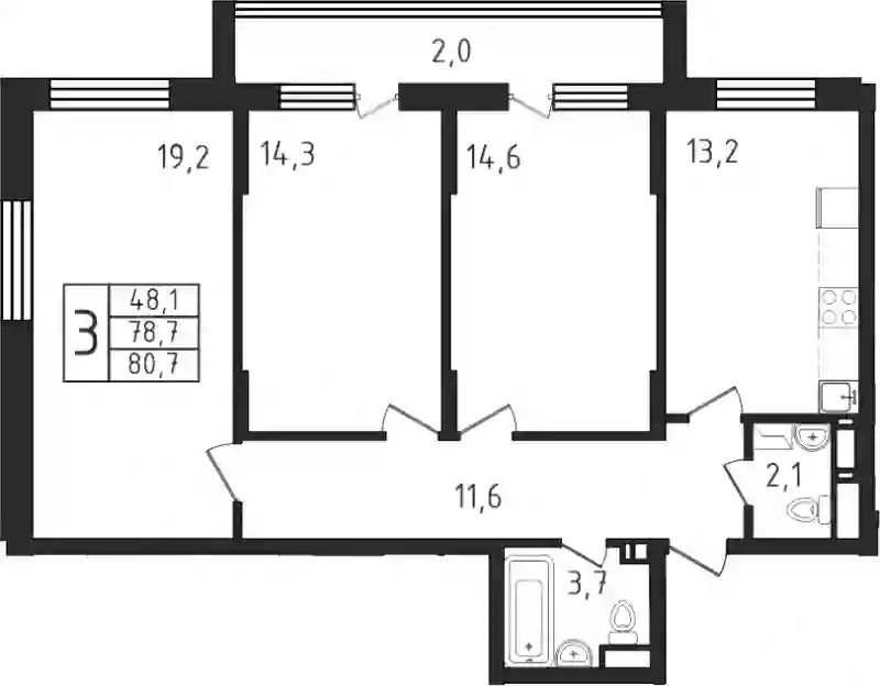 14 685 195 ₽3-к.квартира, 77.99 м², 14 эт.
