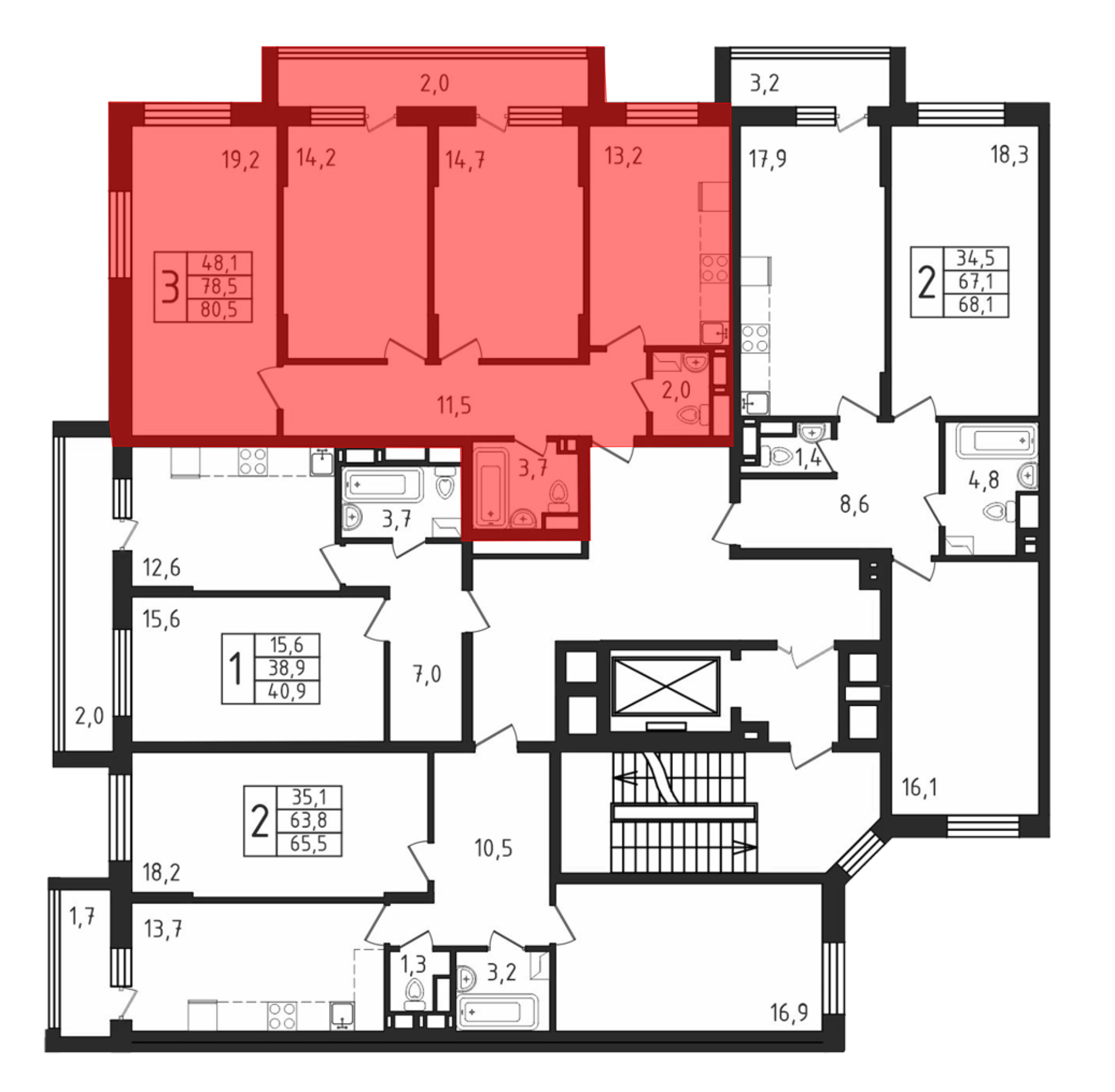 19 140 587 ₽4-к.квартира, 78.8 м², 3 эт.