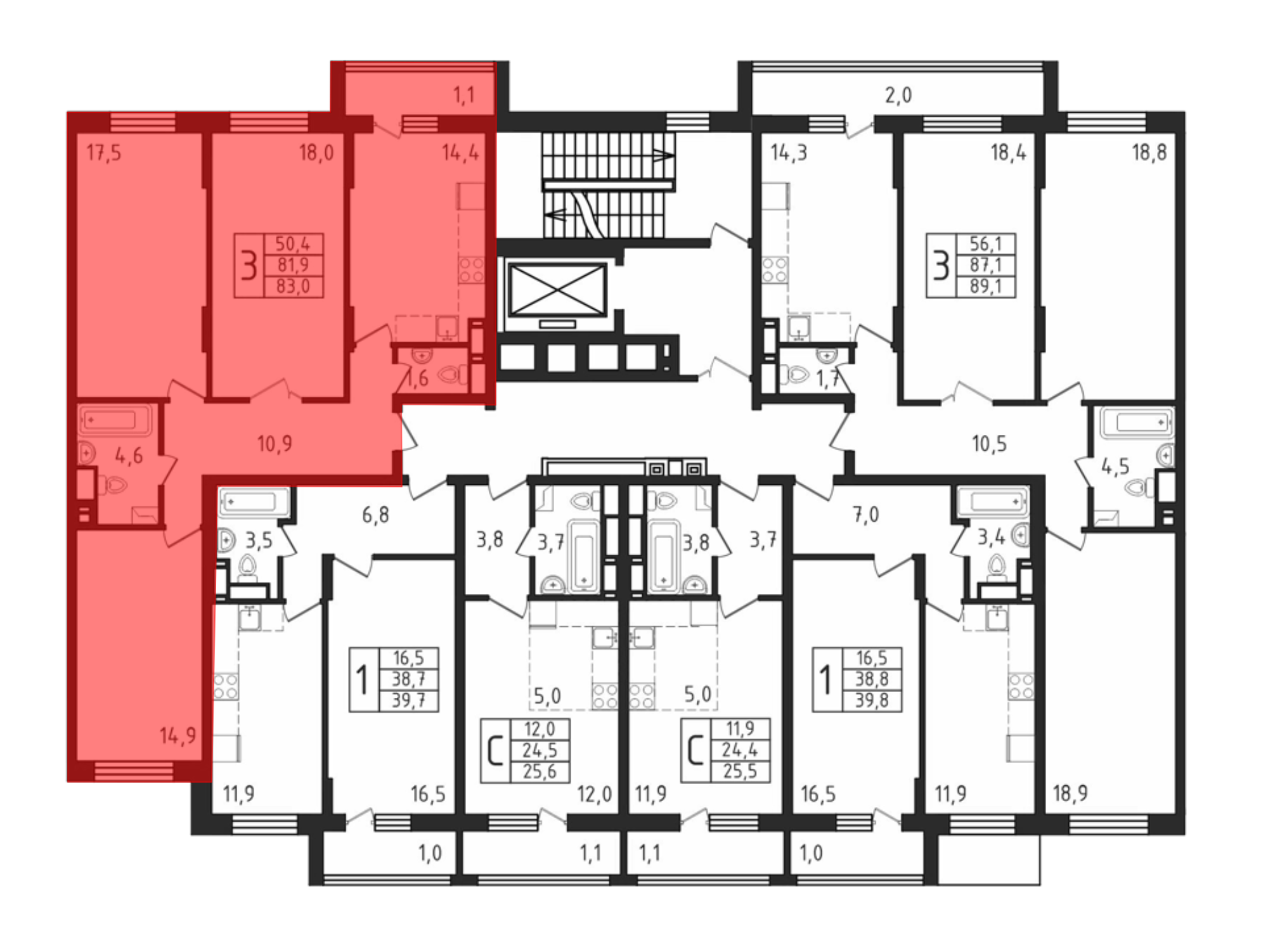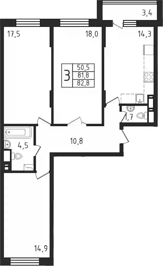 3-к.квартира, 82.1 м², 8 эт. в ЖК Пироговская ривьера. СЗ КОМФОРТИНВЕСТ Корпус 13