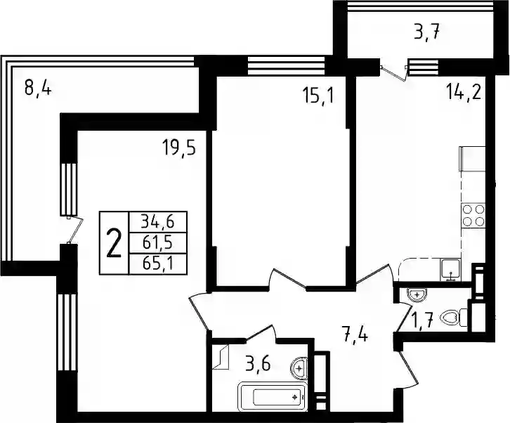 2-к.квартира, 61.37 м², 3 эт. в ЖК Пироговская ривьера. СЗ КОМФОРТИНВЕСТ Корпус 14