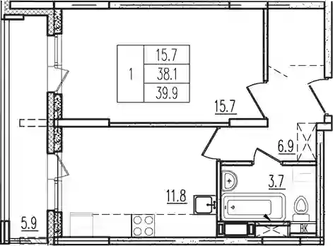 38.1 м2