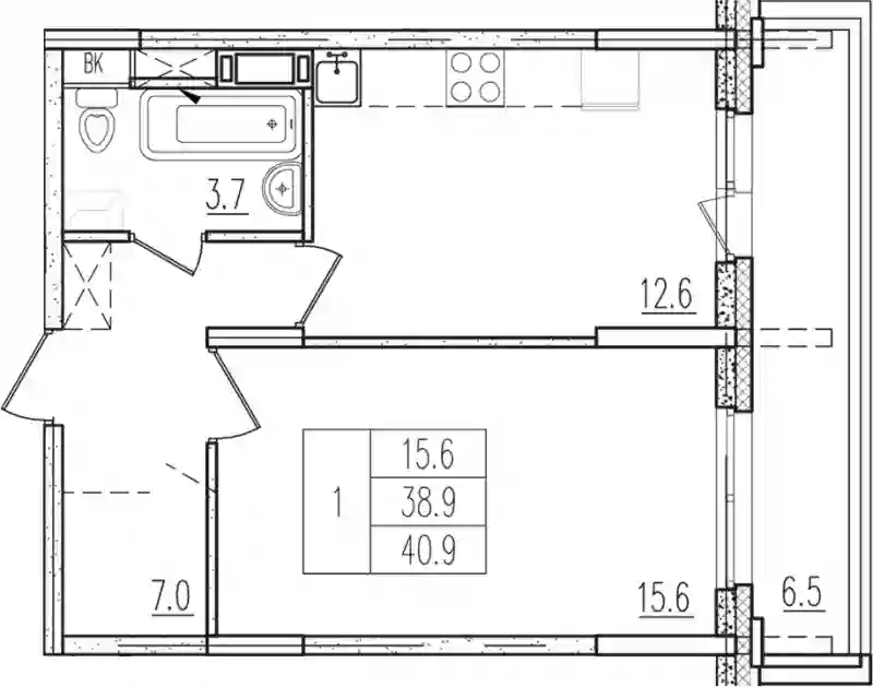 1-к.квартира, 39.05 м², 9 эт. в ЖК Пироговская ривьера. СЗ КОМФОРТИНВЕСТ Корпус 15