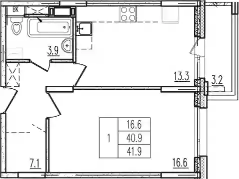 1-к.квартира, 40.84 м², 9 эт. в ЖК Пироговская ривьера. СЗ КОМФОРТИНВЕСТ Корпус 15