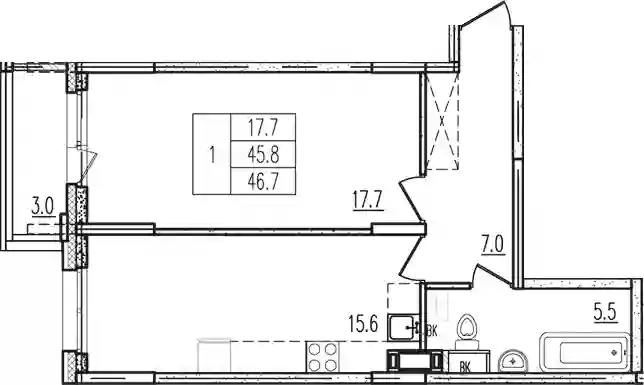 1-к.квартира, 45.8 м², 7 эт. в ЖК Пироговская ривьера. СЗ КОМФОРТИНВЕСТ Корпус 15