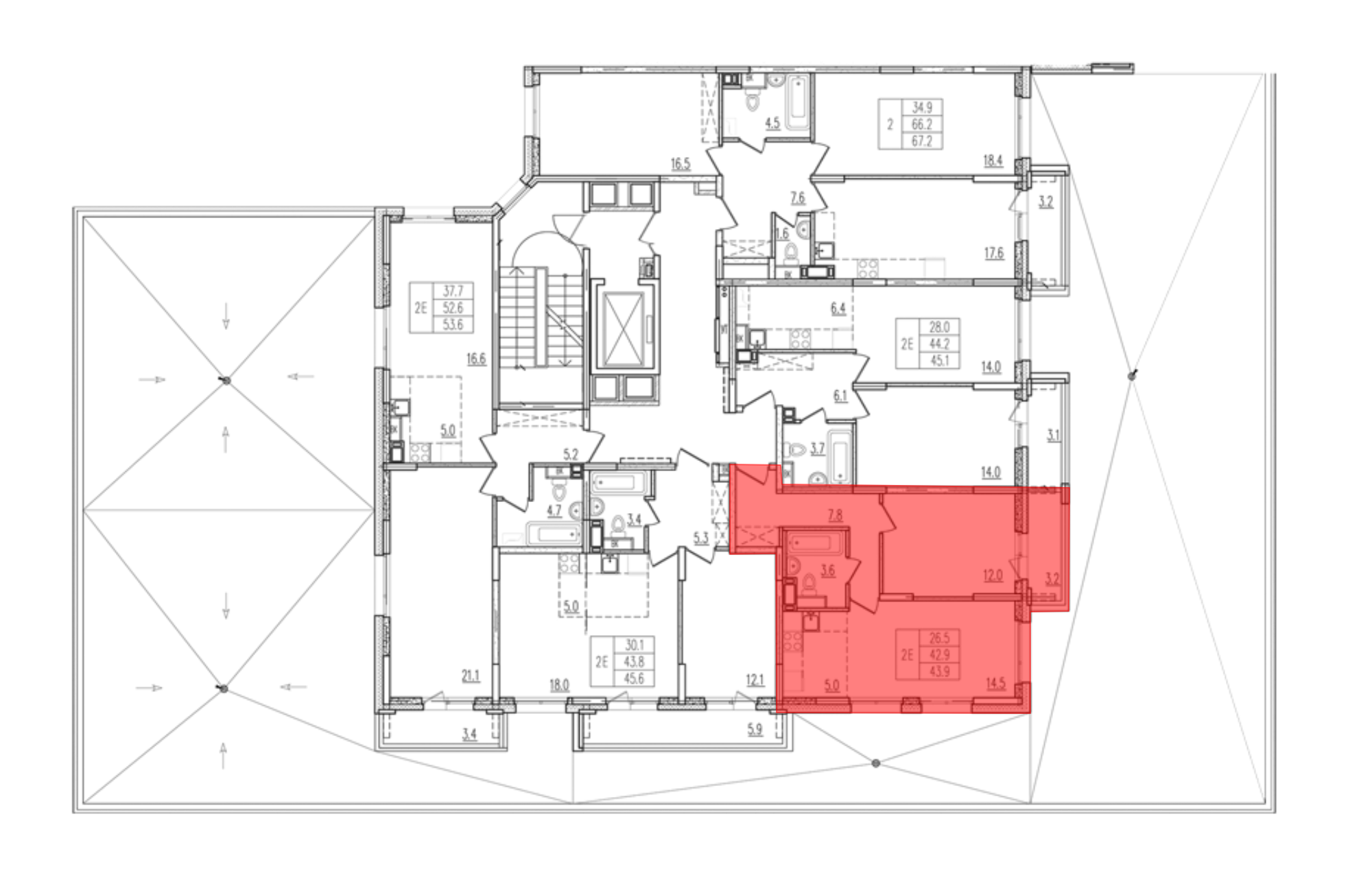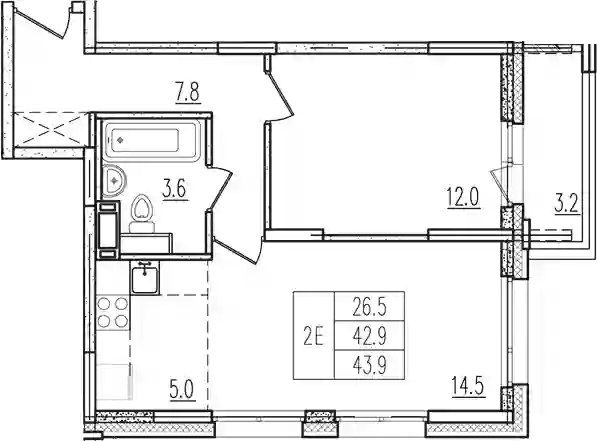 2-к.квартира, 42.94 м², 8 эт. в ЖК Пироговская ривьера. СЗ КОМФОРТИНВЕСТ Корпус 15