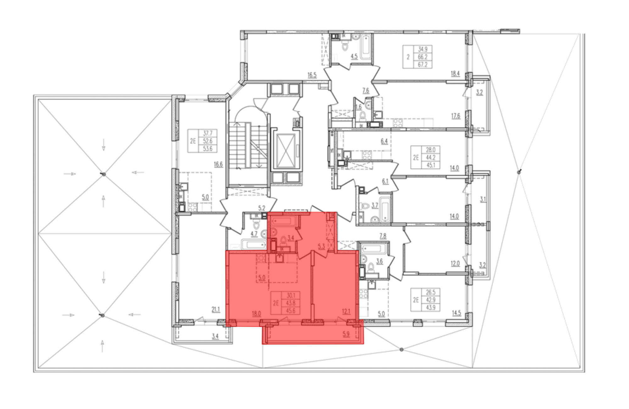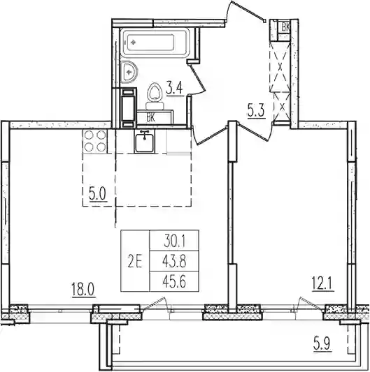 2-к.квартира, 43.83 м², 9 эт. в ЖК Пироговская ривьера. СЗ КОМФОРТИНВЕСТ Корпус 15