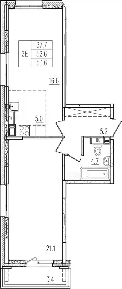 2-к.квартира, 52.48 м², 2 эт. в ЖК Пироговская ривьера. СЗ КОМФОРТИНВЕСТ Корпус 15