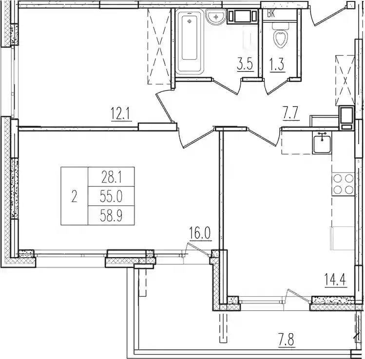 2-к.квартира, 56.56 м², 9 эт. в ЖК Пироговская ривьера. СЗ КОМФОРТИНВЕСТ Корпус 15