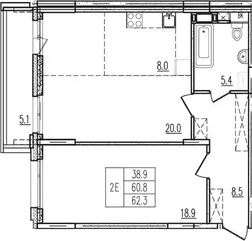 2-к.квартира, 60.77 м², 6 эт. в ЖК Пироговская ривьера. СЗ КОМФОРТИНВЕСТ Корпус 15