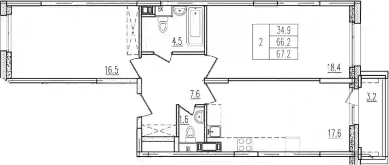 2-к.квартира, 66.04 м², 3 эт. в ЖК Пироговская ривьера. СЗ КОМФОРТИНВЕСТ Корпус 15