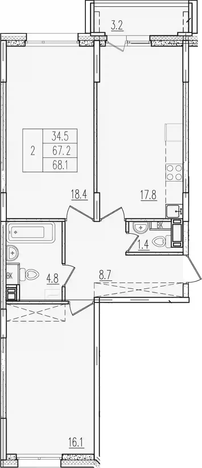 2-к.квартира, 67.24 м², 7 эт. в ЖК Пироговская ривьера. СЗ КОМФОРТИНВЕСТ Корпус 15