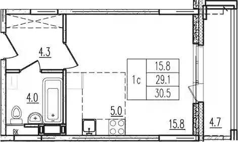 Студия, 28.99 м², 2 эт. в ЖК Пироговская ривьера. СЗ КОМФОРТИНВЕСТ Корпус 15
