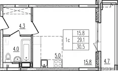 Студия, 29 м², 8 эт. в ЖК Пироговская ривьера. СЗ КОМФОРТИНВЕСТ Корпус 15
