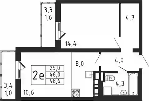 2-к.квартира, 46 м², 4 эт. в ЖК Пироговская ривьера. СЗ КОМФОРТИНВЕСТ Корпус 4