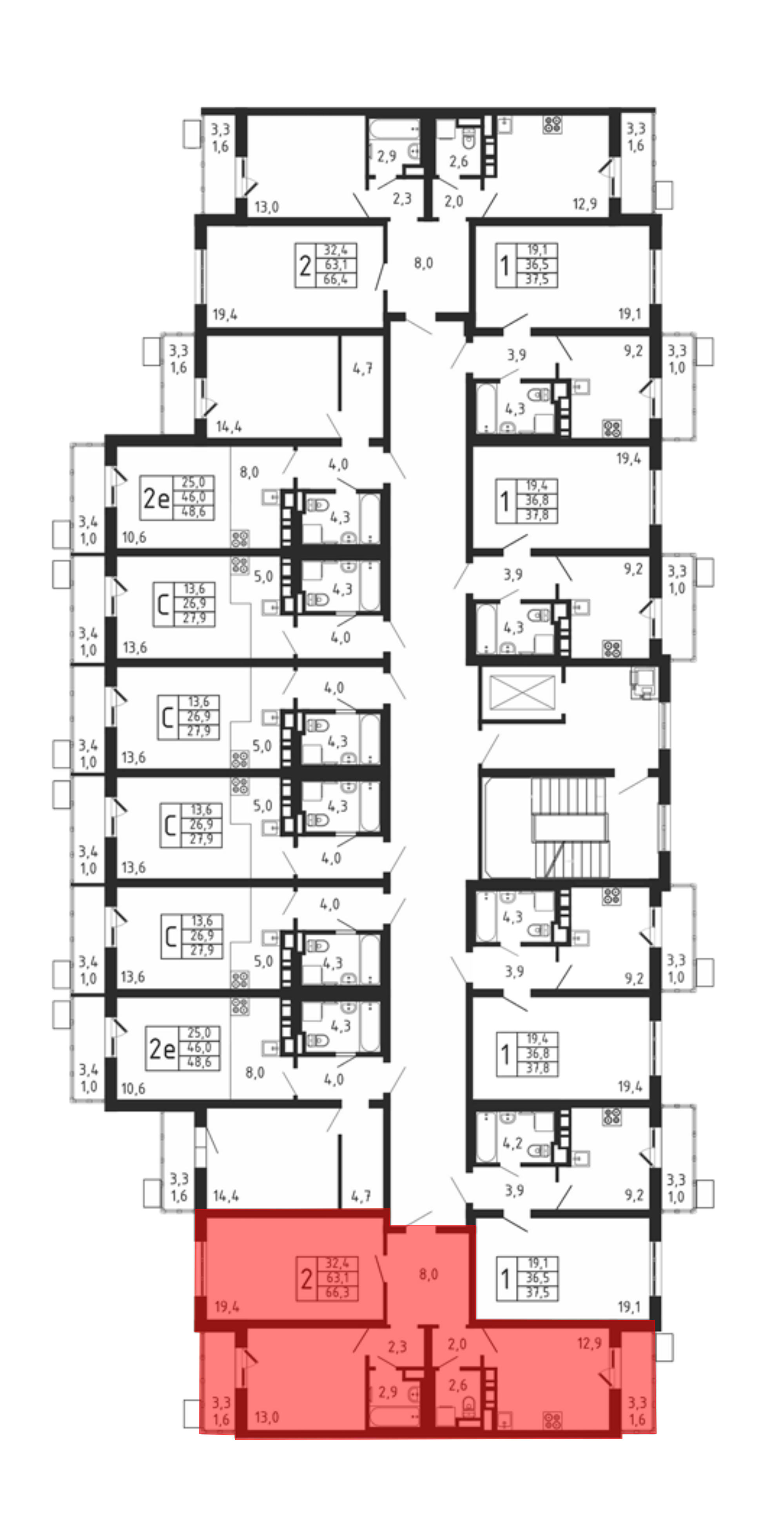 2-к.квартира, 63.1 м², 2 эт. в ЖК Пироговская ривьера. СЗ КОМФОРТИНВЕСТ Корпус 4