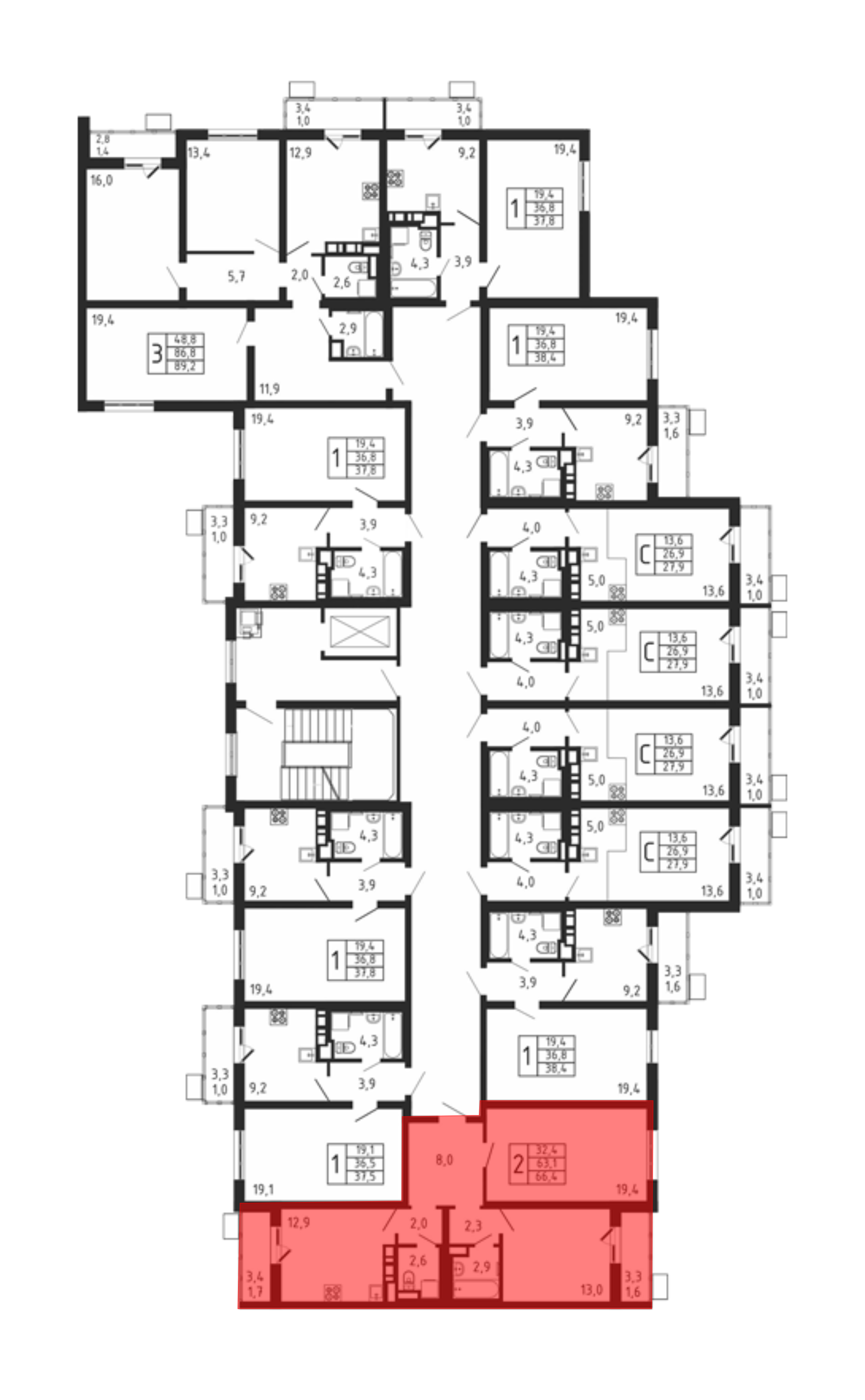 2-к.квартира, 63.1 м², 5 эт. в ЖК Пироговская ривьера. СЗ КОМФОРТИНВЕСТ Корпус 4