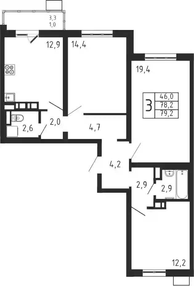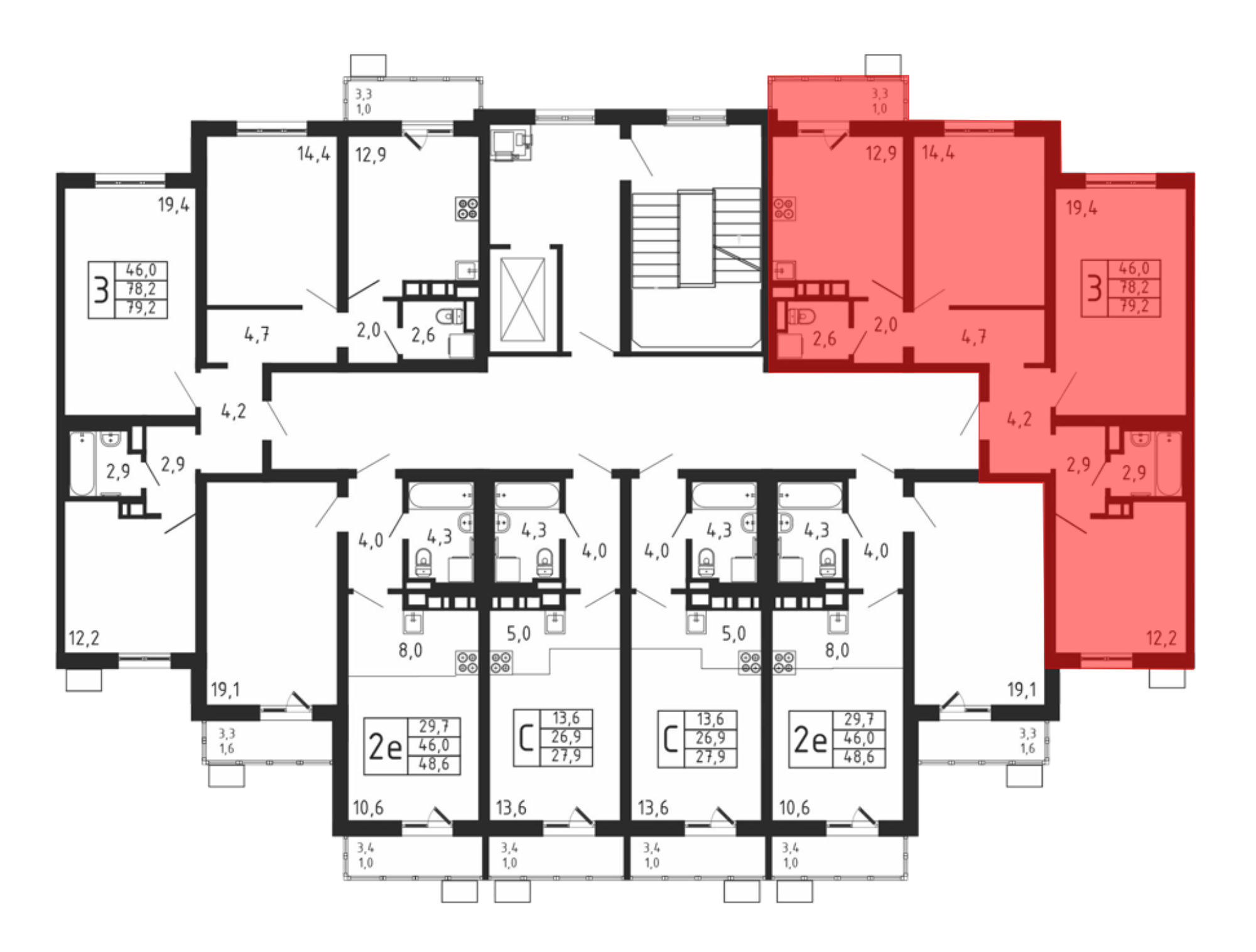 3-к.квартира, 78.2 м², 3 эт. в ЖК Пироговская ривьера. СЗ КОМФОРТИНВЕСТ Корпус 4