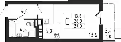 Студия, 26.9 м², 2 эт. в ЖК Пироговская ривьера. СЗ КОМФОРТИНВЕСТ Корпус 4
