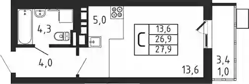 Студия, 26.9 м², 3 эт. в ЖК Пироговская ривьера. СЗ КОМФОРТИНВЕСТ Корпус 4
