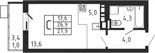 Студия, 26.9 м², 4 эт. в ЖК Пироговская ривьера. СЗ КОМФОРТИНВЕСТ Корпус 4