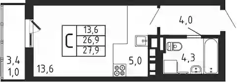 Студия, 26.9 м², 5 эт. в ЖК Пироговская ривьера. СЗ КОМФОРТИНВЕСТ Корпус 4