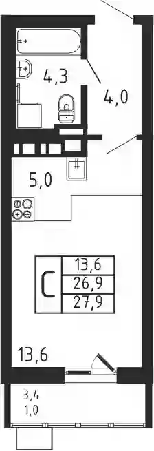Студия, 26.9 м², 5 эт. в ЖК Пироговская ривьера. СЗ КОМФОРТИНВЕСТ Корпус 4