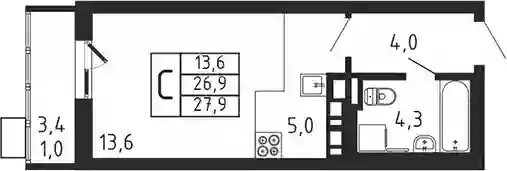 Студия, 26.9 м², 5 эт. в ЖК Пироговская ривьера. СЗ КОМФОРТИНВЕСТ Корпус 4