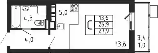 Студия, 26.9 м², 5 эт. в ЖК Пироговская ривьера. СЗ КОМФОРТИНВЕСТ Корпус 4