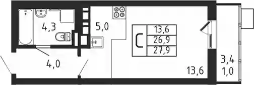 Студия, 26.9 м², 5 эт. в ЖК Пироговская ривьера. СЗ КОМФОРТИНВЕСТ Корпус 4