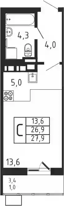 Студия, 26.9 м², 8 эт. в ЖК Пироговская ривьера. СЗ КОМФОРТИНВЕСТ Корпус 4