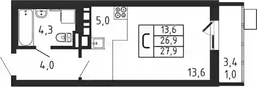 Студия, 26.9 м², 9 эт. в ЖК Пироговская ривьера. СЗ КОМФОРТИНВЕСТ Корпус 4